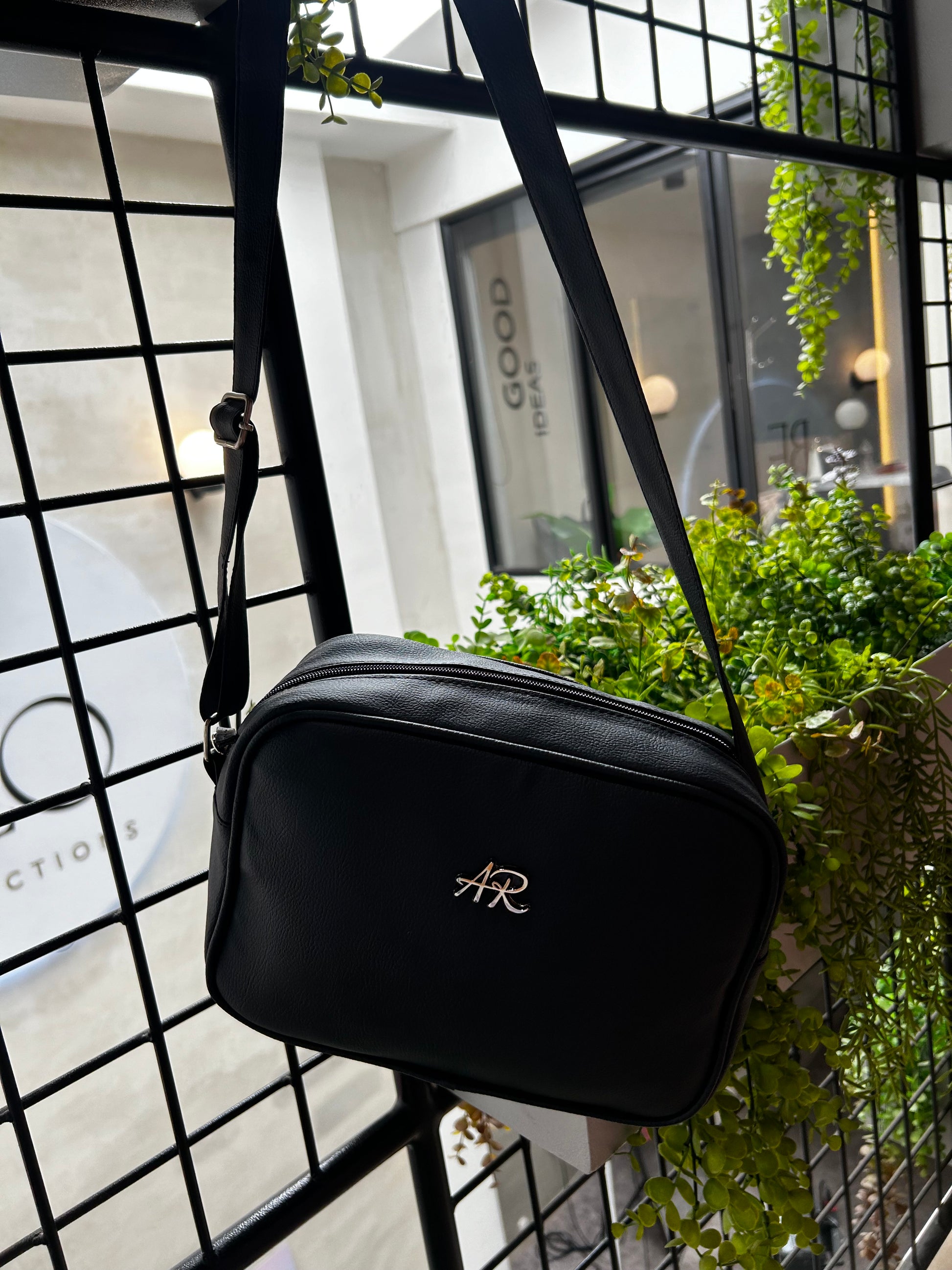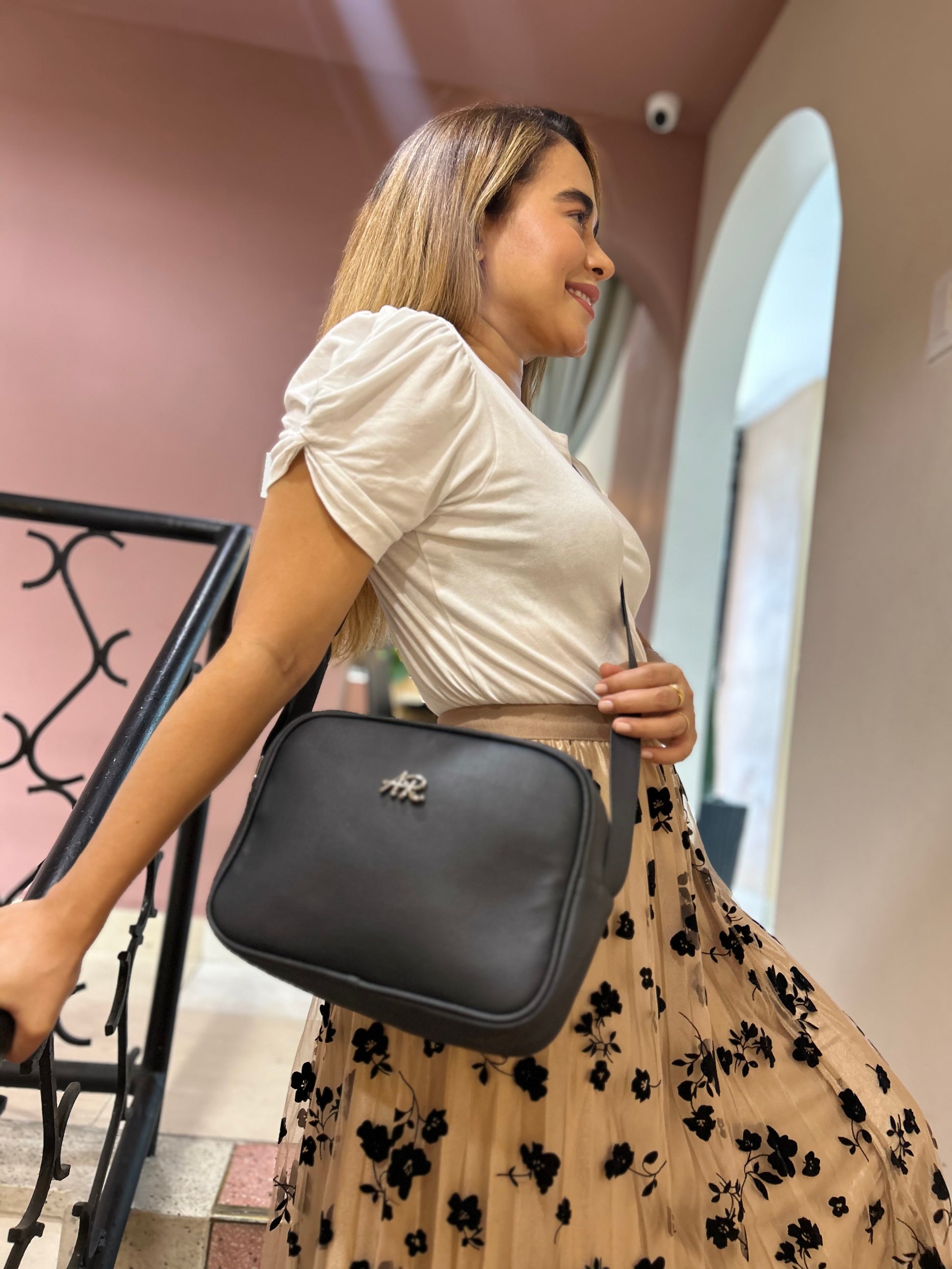 Descubre la versatilidad de nuestro bolso manos libres en color negro mate, diseñado para acompañarte en todas tus aventuras diarias. Con su forma rectangular y un práctico bolsillo con cremallera en la parte trasera, es el accesorio básico que necesitas para tus salidas casuales.