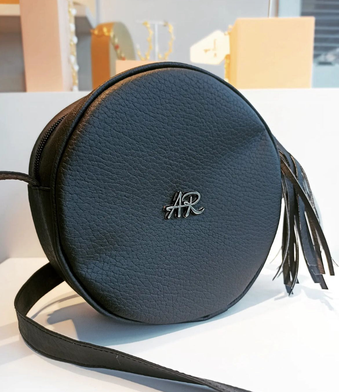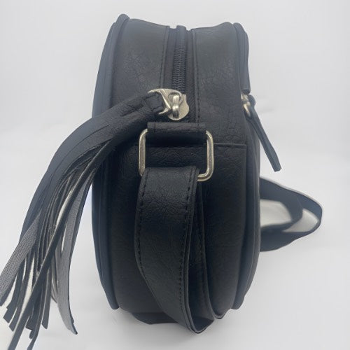 Nuestro bolso redondo negro, el accesorio ideal para quienes buscan elegancia y versatilidad. Con un práctico diseño manos libres y un bolsillo con cierre en la parte trasera, este bolso espacioso es perfecto para tus salidas casuales.